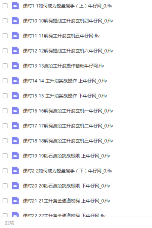 【资料名称】: 【黄琼】牛仔网讲师黄琼上善若水 挑战主升极限 22课视频