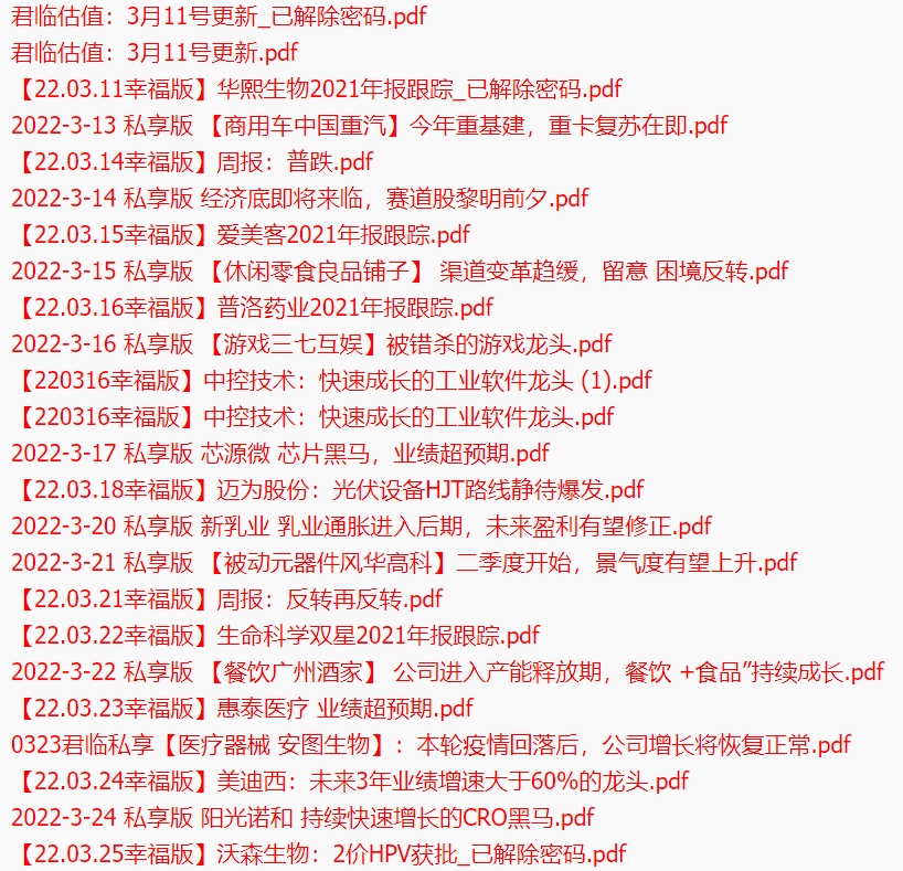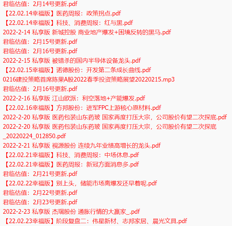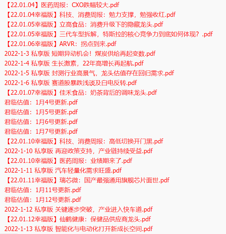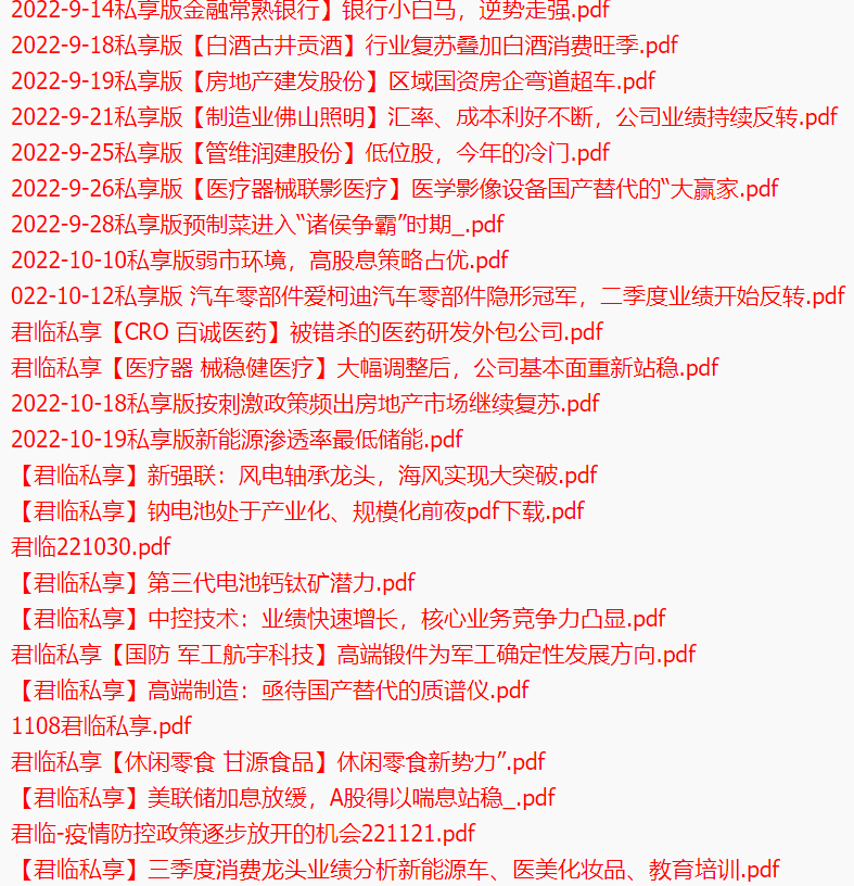 【资料名称】: 【君临研报】2022年君临研报·年度私享版 更新中 【资料描述】: 投资技术学习 资料截图如下: 【君临研报】2022年君临研报·年度私享版 更新中 1212君临私享.pdf 1213君临私享.pdf 1214君临私享.pdf 1215君临私享.pdf 1218君临私享.pdf 1219君临私享.pdf 1220君临私享.pdf 1221君临私享.pdf 1222君临私享.pdf 1225君临私享.pdf 1226君临私享.pdf 1227君临私享.pdf 1228君临私享.pdf 1229君临私享.pdf 网络收集,如有侵权请联系删除!仅供股友参考学习,盈亏自负。 【下载地址】:点回复查看下载地址